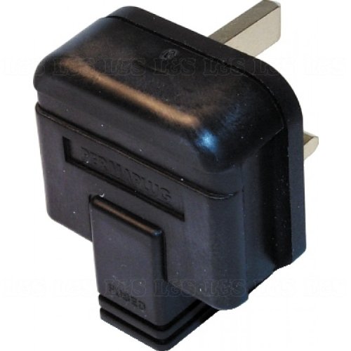 Black Rubber 3 Pin Domestic Plug 13 amp